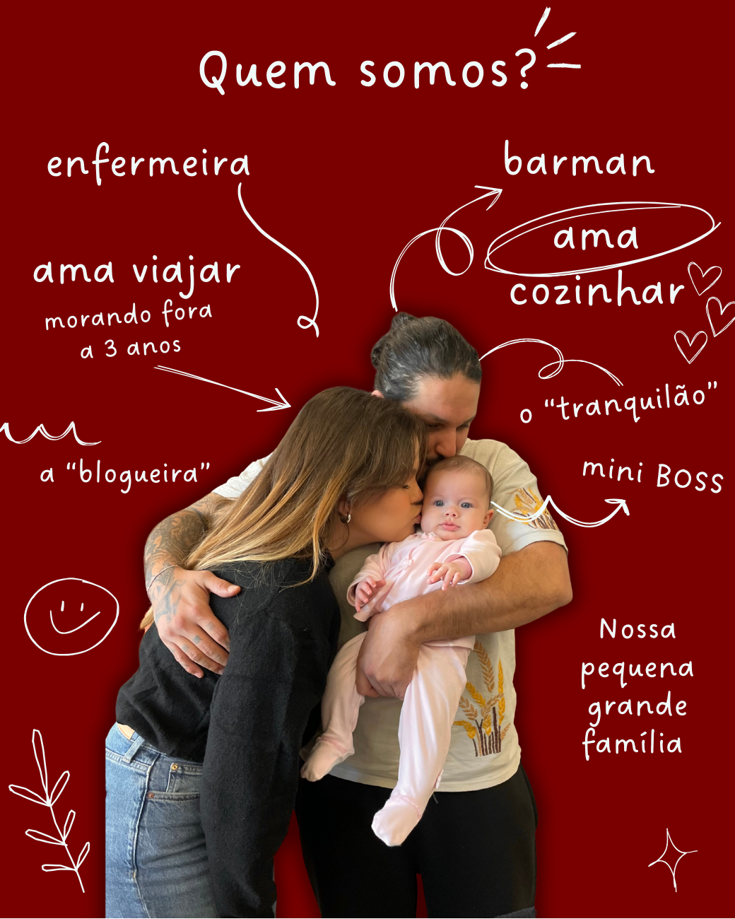 Nós somos em 3: a mamãe Giovanna, o papai Pedro e a nossa pequena Cecília — a inspiração de tudo.